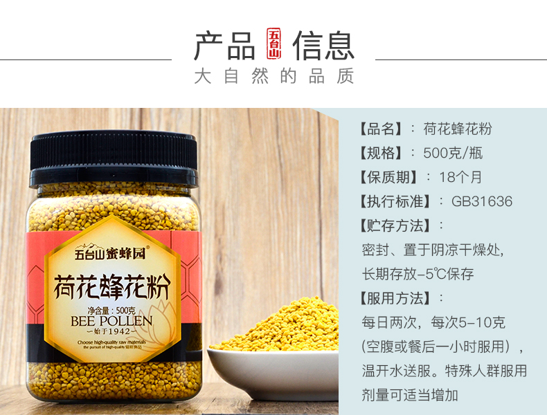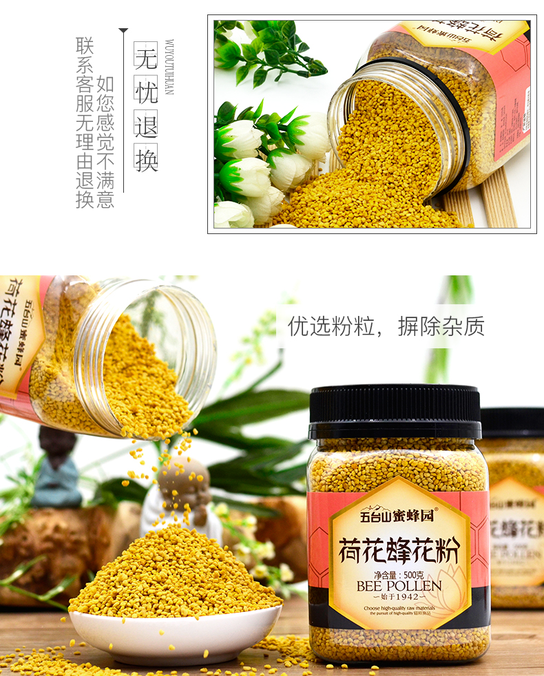 五臺山蜜蜂園荷花蜂花粉500克